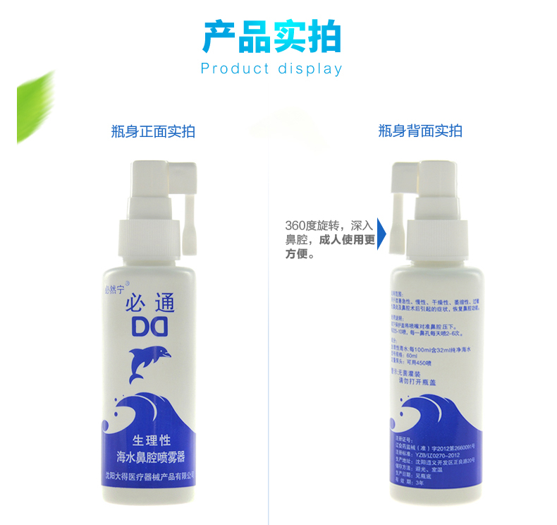 必然宁必通生理性海水鼻腔喷雾器60ml
