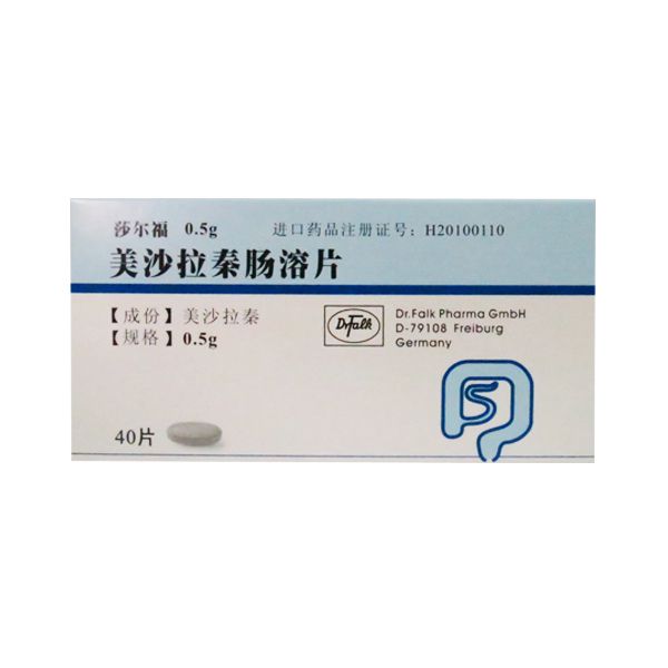 | 注意事项: | 1.  根据医生判断,必要时在治疗前和治疗过程中检查血象(血细胞分类计数,肝功能参数如ALT或AST,血肌苷)和尿液状况(试纸或尿沉渣)。建议开始治疗后 14天检查这些项目,此后每隔4周进一步复查2~3次。如检查结果正常,每3个月例行检查一次。如发现其他症状,必须立即进行相关检查。    2.肝功能障碍者应慎用本品。 3.肾功能障碍者勿使用本品。如使用本品期间出现肾功能恶化,应考虑到美沙拉秦引起的中毒性肾损伤。 4.患有肺功能障碍的患者,特别是哮喘患者,应在医生的严密监控下使用本品治疗。 5.对含有柳氮磺吡啶的药物过敏的患者,应在医生的严密监控下使用本品。如出现急性不耐受反应(抽搐、急性腹痛、发热、严重头痛以及皮疹等症状),须立即停止治疗。 6.极少数情况下,在切除回盲部并同时切除回盲瓣的患者中,可在大便中观察到未溶解的美沙拉秦肠溶片,这是由于本品快速通过肠道所致。  | |||